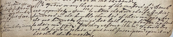 Entry in the Minutes of Parliament referring to a gift of £100 from Sir Edmund Saunders, 26 January 1682/83 (MT/1/MPA/6).