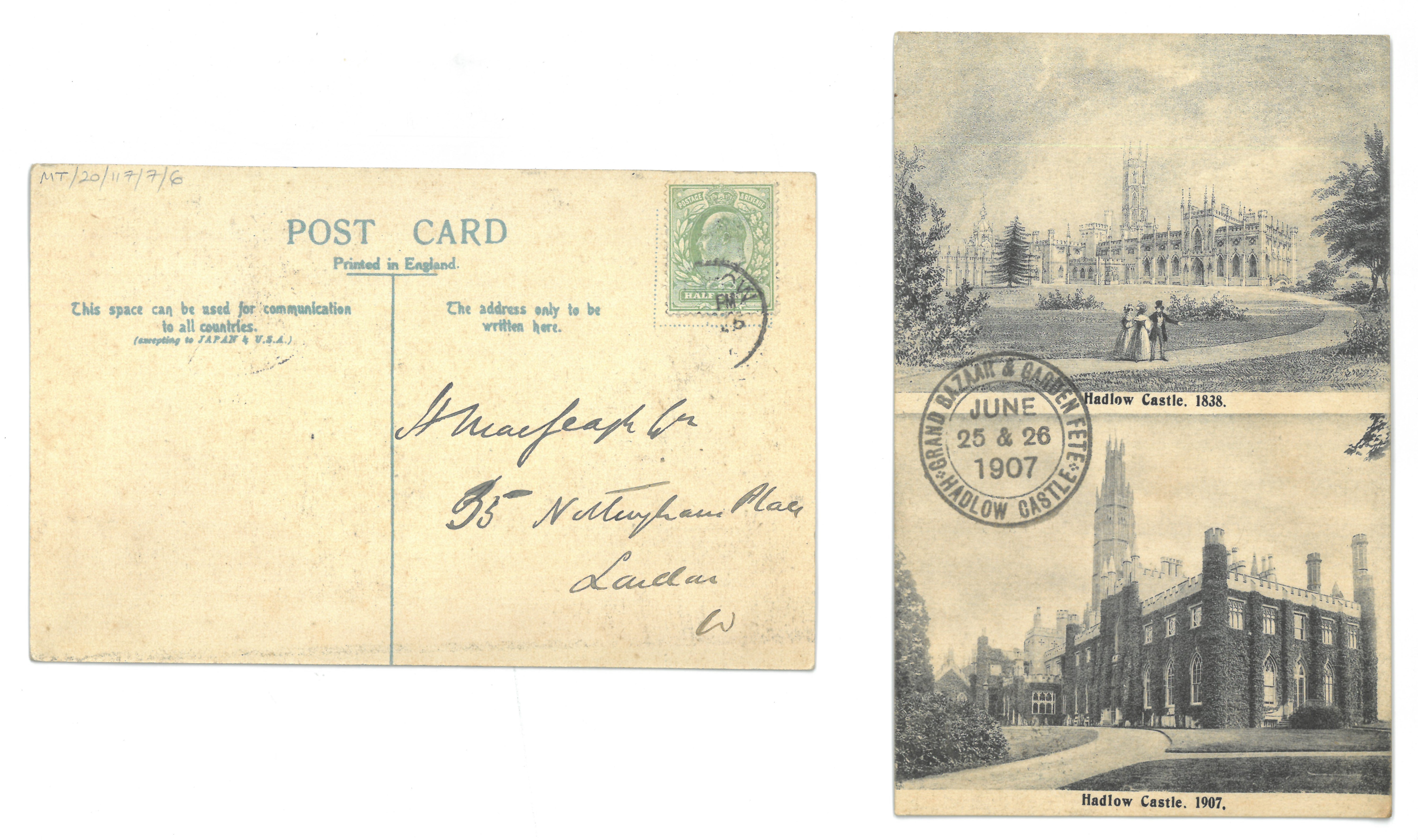 Postcard of Hadlow Castle, addressed to Sir Henry MacGeagh, June 1907 (MT/20/117/7/6)
