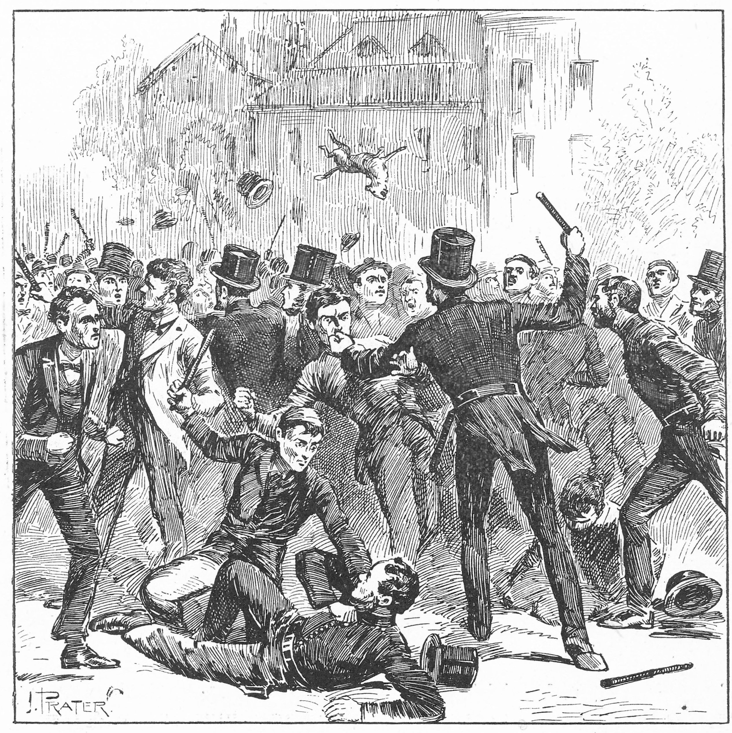 The police, wearing Peel’s early uniform, contend with a mob at at Coldbath fields, 1833. Griffiths, Arthur. Mysteries of police and crime. In three volumes. London: Cassell, 1901-1902.