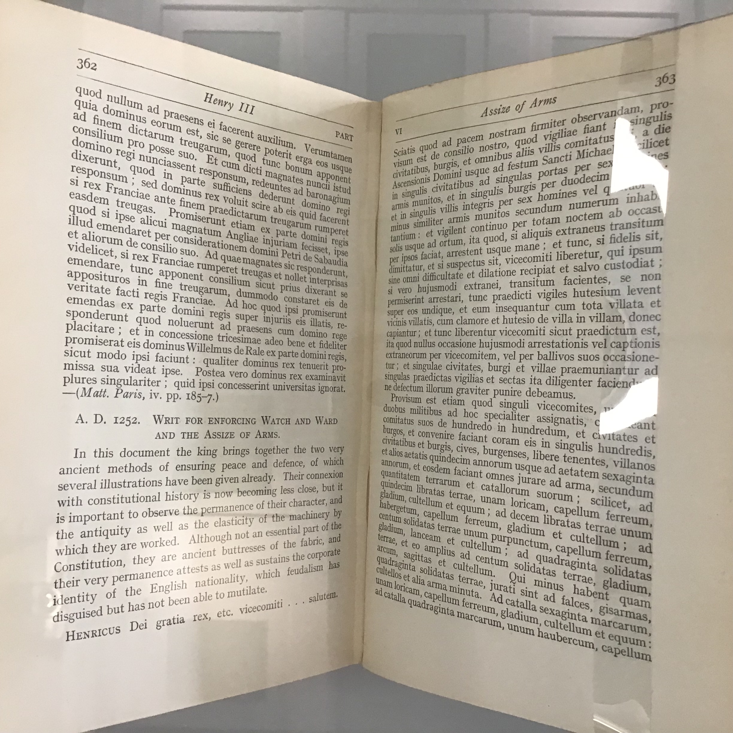 Stubbs, W. Select charters and other illustrations of English constitutional history : from the earliest times to the reign of Edward the First. 9th ed. Oxford: Oxford University Press, 1913.