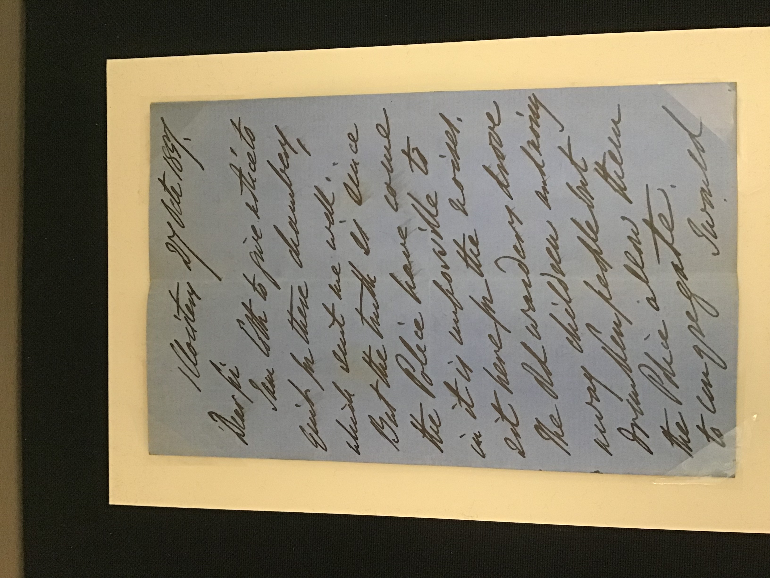 I am loathe to give notice to quit in these chambers which suit me well, but the truth is, since the police have come in it is impossible to sit here for the noises. The old warders drove away children and noisy drunken people, but the police allow them to congregate. I would also mention that the ticket porters one [illegible] especially is continuing making a noise and using low and obscene language under my window while idly sitting on the bench in Tanfield Court. I regret to be obliged to complain but the nuisance has been quite intolerable for some months.