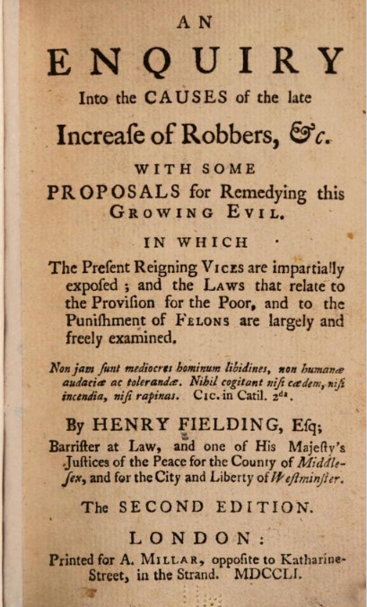Fielding, Henry. 1751. An Enquiry into the Cause of the Late Increase of Robbers, &c., With Some Proposals for Remedying this Growing Evil. London.’